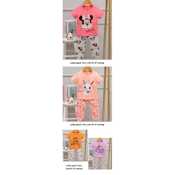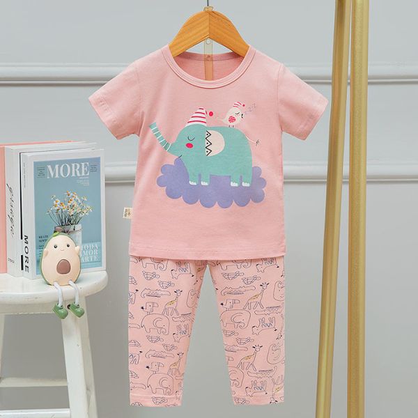 5% Spandex Short Sleeve Long Pants Children'S Pajamas Sets Cartoon Pj Set 100cm Height Images |